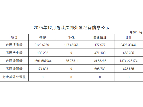 2025年12月危險(xiǎn)廢物處置經(jīng)營(yíng)信息公示