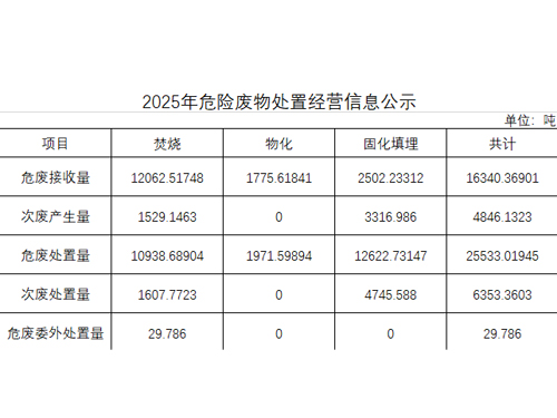 2025年危險(xiǎn)廢物處置經(jīng)營(yíng)信息公示