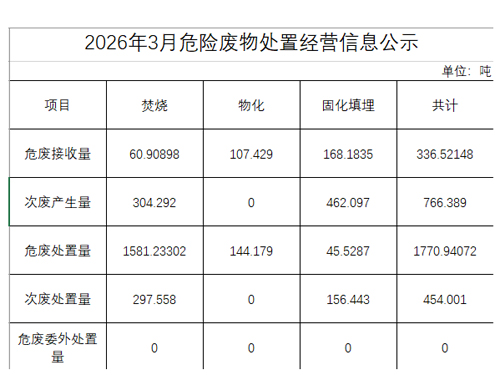2026年1月危險(xiǎn)廢物處置經(jīng)營(yíng)信息公示